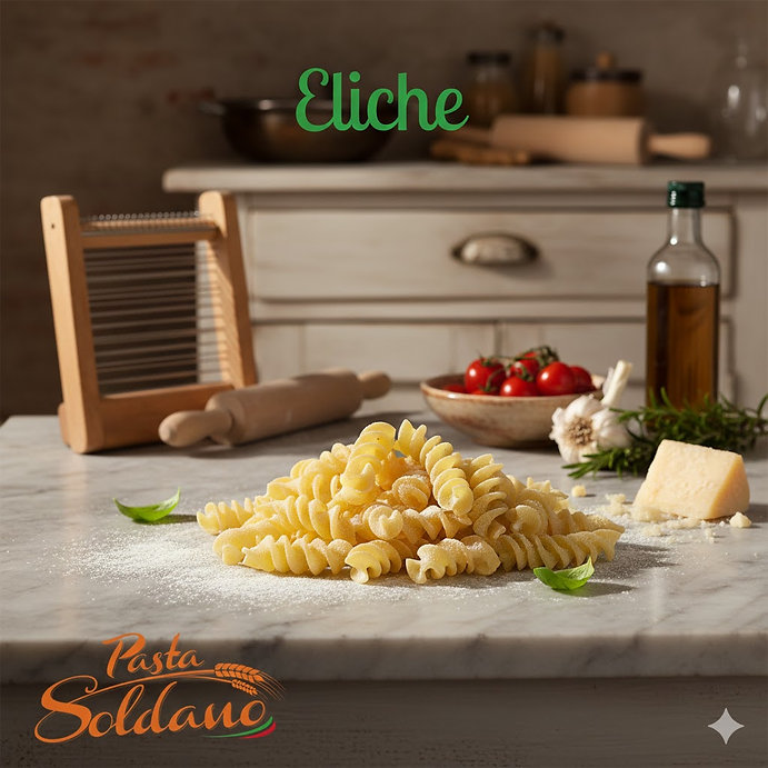 Le eliche (termine italiano che significa “viti” o “eliche”) appartengono alla famiglia della pasta a spirale e sono strettamente imparentate con i noti fusilli.