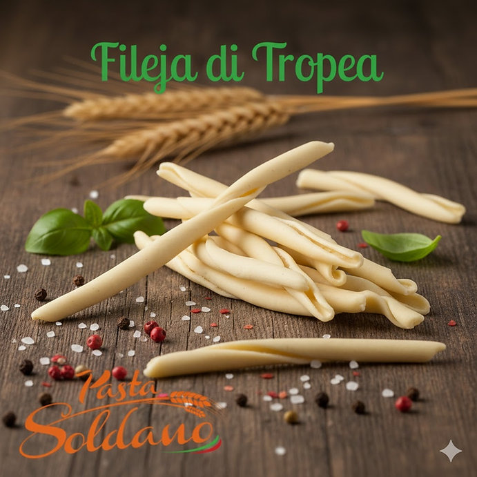 La Fileja di Tropea (spesso chiamata anche Filej) è la tipica specialità di pasta della provincia di Vibo Valentia in Calabria, particolarmente nota nella città di Tropea. 🇮🇹 Questa pasta ha una forma allungata e leggermente attorcigliata. Tradizionalmente, si prepara avvolgendo piccoli pezzi di pasta attorno a un sottile bastoncino di legno o a un filo d’erba essiccato (il dinamulu o il buso) e poi arrotolandoli su una spianatoia con il palmo della mano. Questo crea un centro cavo che trattiene perfettamente i sughi. 🍝