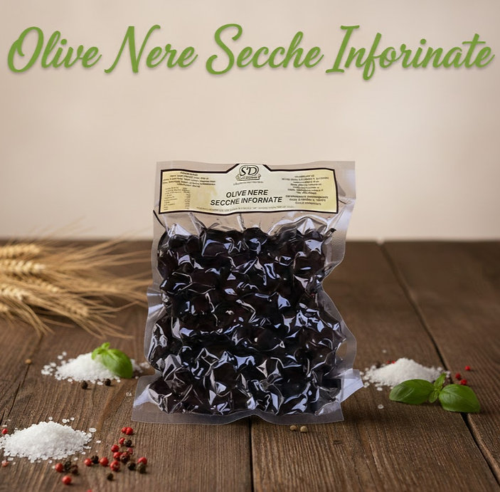 Olive nere al forno – Intensità in ogni morso. Queste olive nere sono una vera prelibatezza della tradizione calabrese. Dopo la raccolta, vengono delicatamente cotte al forno, acquisendo così la loro caratteristica consistenza leggermente rugosa e un aroma incomparabilmente intenso. Vengono poi preparate artigianalmente e marinate in una delicata miscela di erbe aromatiche e olio che ne esalta perfettamente il sapore.
